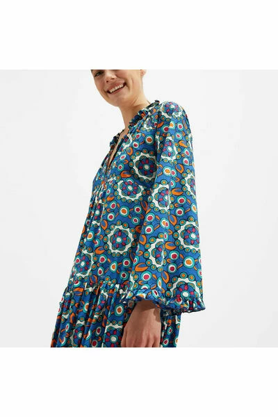 Een boho-jurk afgezwakt met een eenvoudig silhouet, de duif is een van de favorieten van J.J. voor zijn hippie, overal wat sfeer. Met brede en rechte, mouwen op volledige lengte heeft het een royale tailleband die goed is voor kreeftlunches in Hotel Il Pellicano. Een gelaagde rok en ruche details geven het wat romantische oomph, terwijl de coole katoenen poplin -stof scoort A+ op hete zomerdagen. Afgewerkt in onze vintage caleidoscoop Bluette -print om je boho babe te laten blozen.