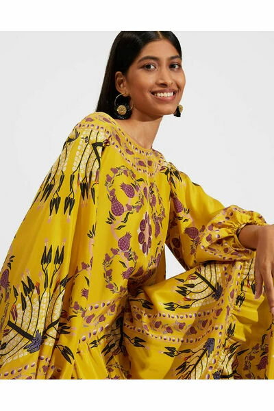 Manifesteer de vakantie van je dromen in deze meest romantische van folky jurken. De volumineuze romantische vorm – denk aan puff mouwen, gelaagde rok, uber ruime taille – voelt nooit te zwaar in onze luxe zijde en we hebben kleine details zoals banden aan de mouw en achterkant toegevoegd. Prime voor Wafting rond de Italiaanse Riviera, maar even goed voor een Fancypants-uitnodiging, dit trekt nummer wordt geleverd in onze hemelse hand geplaatste melograno-print en is 100% gemaakt in ItaliΓ« (zoals altijd).