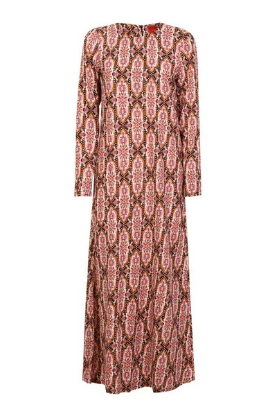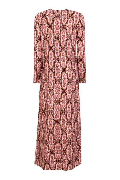 Ronde nek. Lange mouwen. Verborgen achterpakket aan de achterkant. Pleit detaillering. All-over abstact print. Enkel lengte. Kleur: oranje/ fuxia/ multicolor, gemaakt in ItaliΓ«, materiaal: 96% viscose 4% elastaan, productcode: 183281, merkcode: dre0184 Vis001 Tap0001,