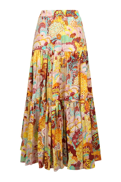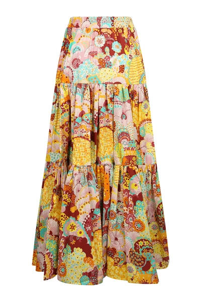 Abstract patroonafdruk, gelaagde rok, hoge taille, wijd uitlopen, kleur: multicolor ,, katoen 100%, gemaakt in ItaliΓ«,